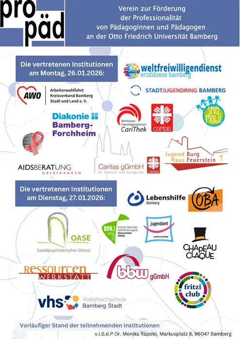 Die Praxistage finden jährlich Ende Januar statt. Hier präsentieren sich zahlreiche pädagogische Einrichtungen und Institutionen der Region an der Uni. Aus erster Hand können so pädagogische Arbeitsfelder kennengelernt, Netzwerke geknüpft, Praktikums- und Arbeitsplätze sondiert werden. Die Fachstudienberatung und auch Erstsemestertutor:innen geben Einblicke in das Studium.