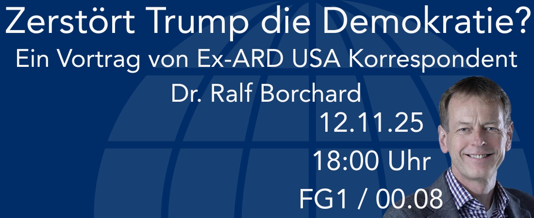 Sie sind herzlich eingeladen zum Vortrag mit anschließender Diskussion und Getränken am Mittwoch, 12.11.25, 18:00 Uhr, im Raum F21 / 01.37 (Achtung, neuer Raum im Hauptgebäude, 1. Stock).