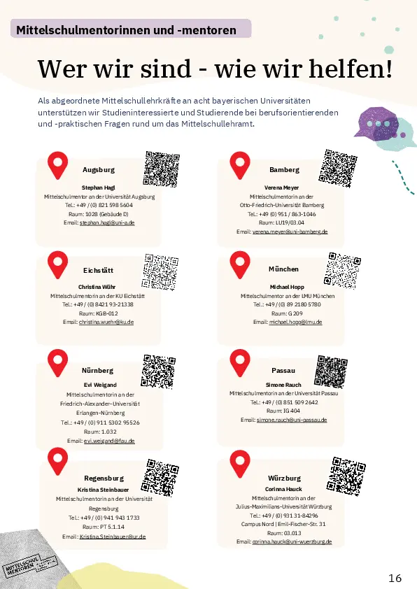 Wichtig: Für organisatorische und inhaltliche Fragen zum Studium wende dich an die Zentrale Studienberatung oder an die Fachstudienberatung Mittelschule.