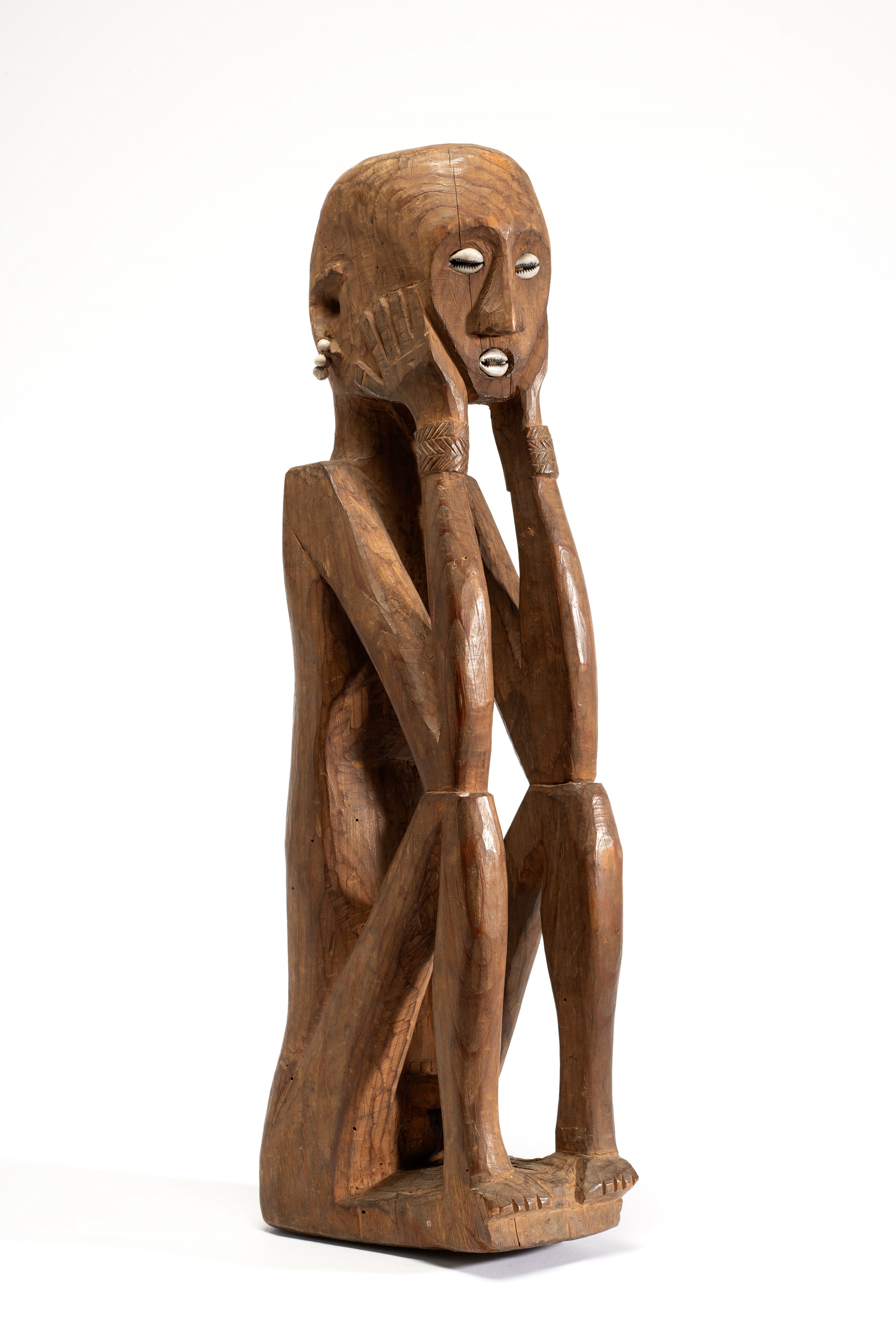 Großformatige Ahnenfigur, die jüngst in der Ausstellung „Der Kolonialismus in den Dingen“ des Museums Fünf Kontinente zu sehen war. Heinrich Rothdauscher erhielt sie als Geschenk eines spanischen Kolonialoffiziers.