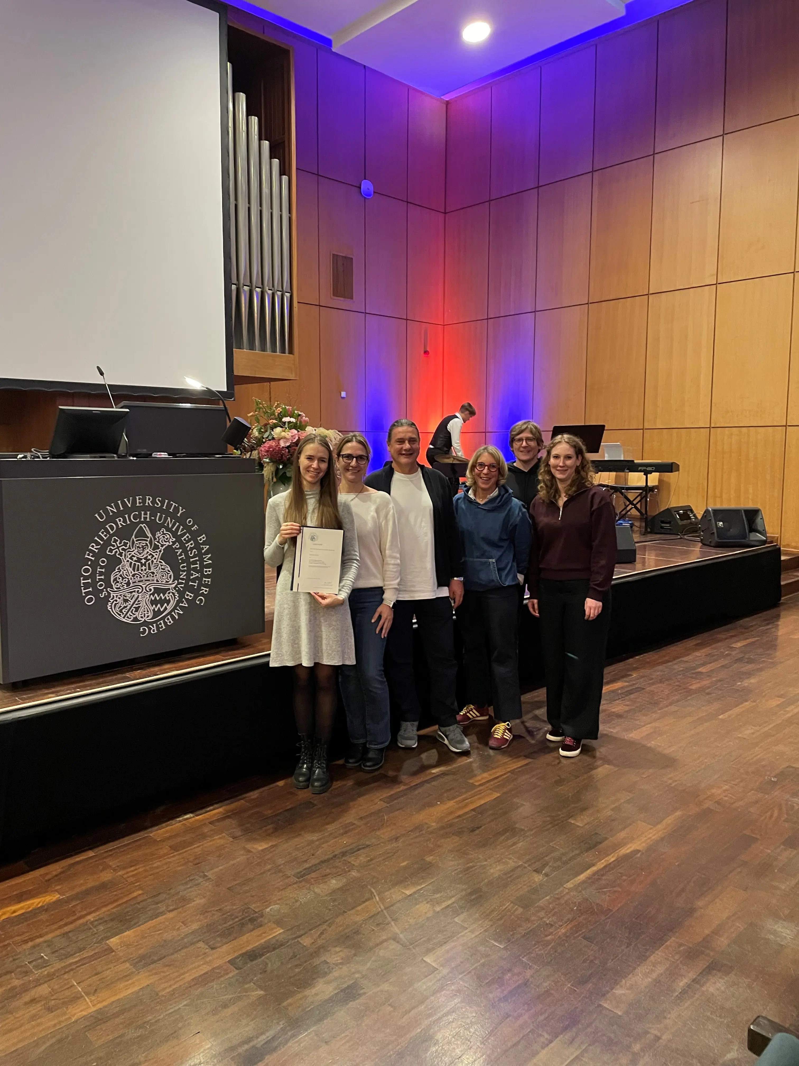Der diesjährige Nachhaltigkeitspreis in der Kategorie „Forschung“ wurde im Rahmen des Dies academicus 2025 an unsere Mitarbeiterin Caterina Rauh verliehen.