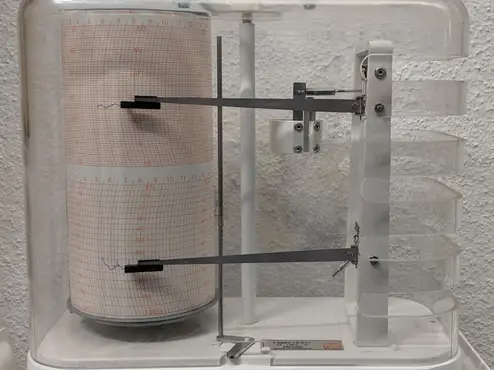 Mit diesem Gerät kann man Temperatur und Luftfeuchte über einen längeren Zeitraum dokumentieren. Thermohygrographen werden vielfach in Museen zur Klimaüberwachung eingesetzt.