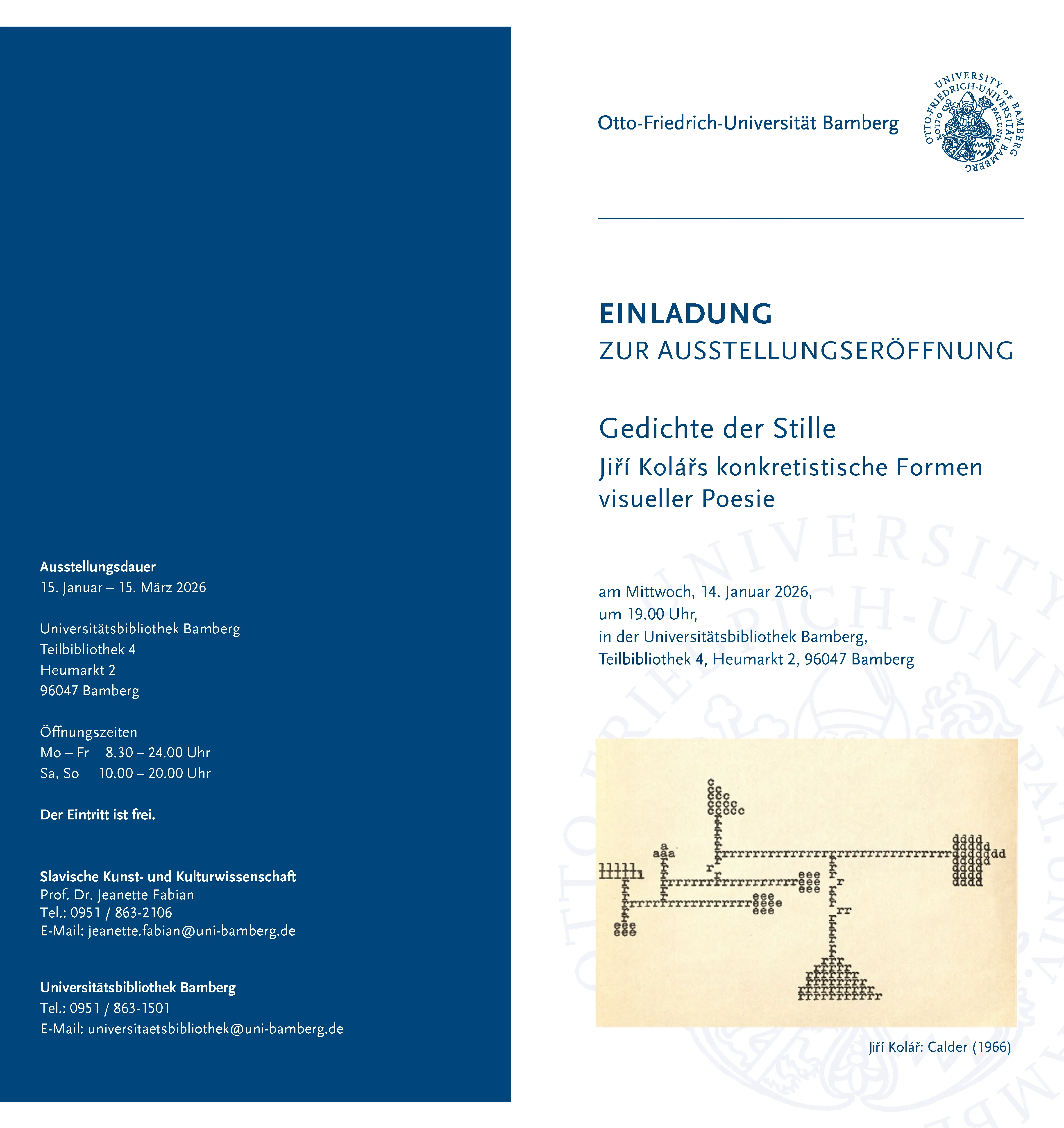 Ausstellungsdauer: 15. Januar – 15. März 2026. Der Eintritt ist frei.