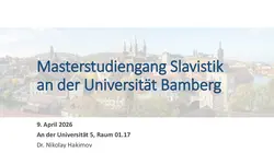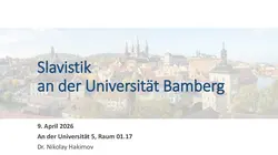 Wir freuen uns, dass Sie sich für das Studium der Slavistik an der Universität Bamberg entschieden haben! Auf dieser Seite finden Sie unsere Erstsemester-Präsentationen für den Bachelor und Master Slavistik.