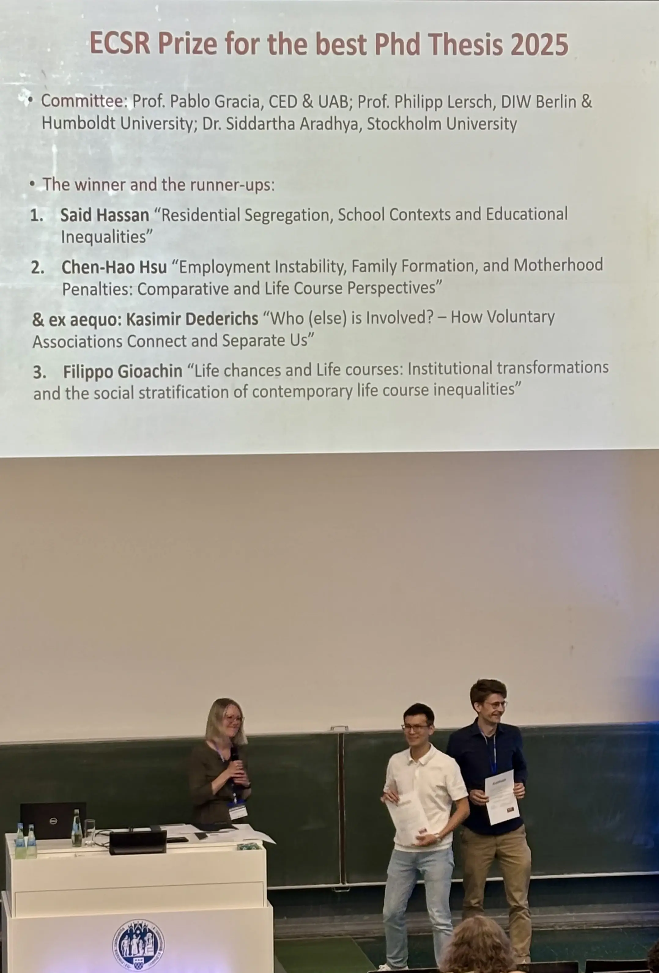 Für seine herausragende Dissertation wurde Chen-Hao Hsu mit dem zweiten Platz des angesehenen Dissertationspreises des European Consortium for Sociological Research (ECSR) e.V. ausgezeichnet.