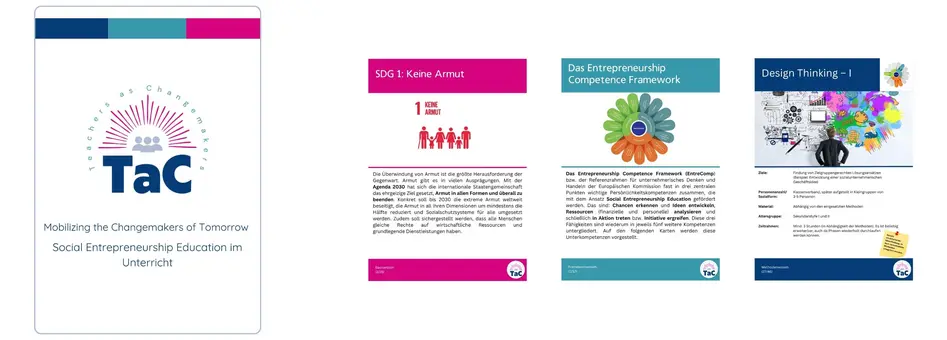 Im Rahmen von TaC haben wir eine Toolbox für Lehrkräfte entwickelt. Die Toolbox vermittelt ihnen Wissen zu den Themen Nachhaltigkeit und gemeinwohlorientiertes Unternehmertum und zeigt, wie dieses anhand von Zukunftsmethoden praxisnah in den Unterricht integriert werden kann. Hier können Sie die Toolbox(6.0 MB) und die Anleitung(455.6 KB) herunterladen.