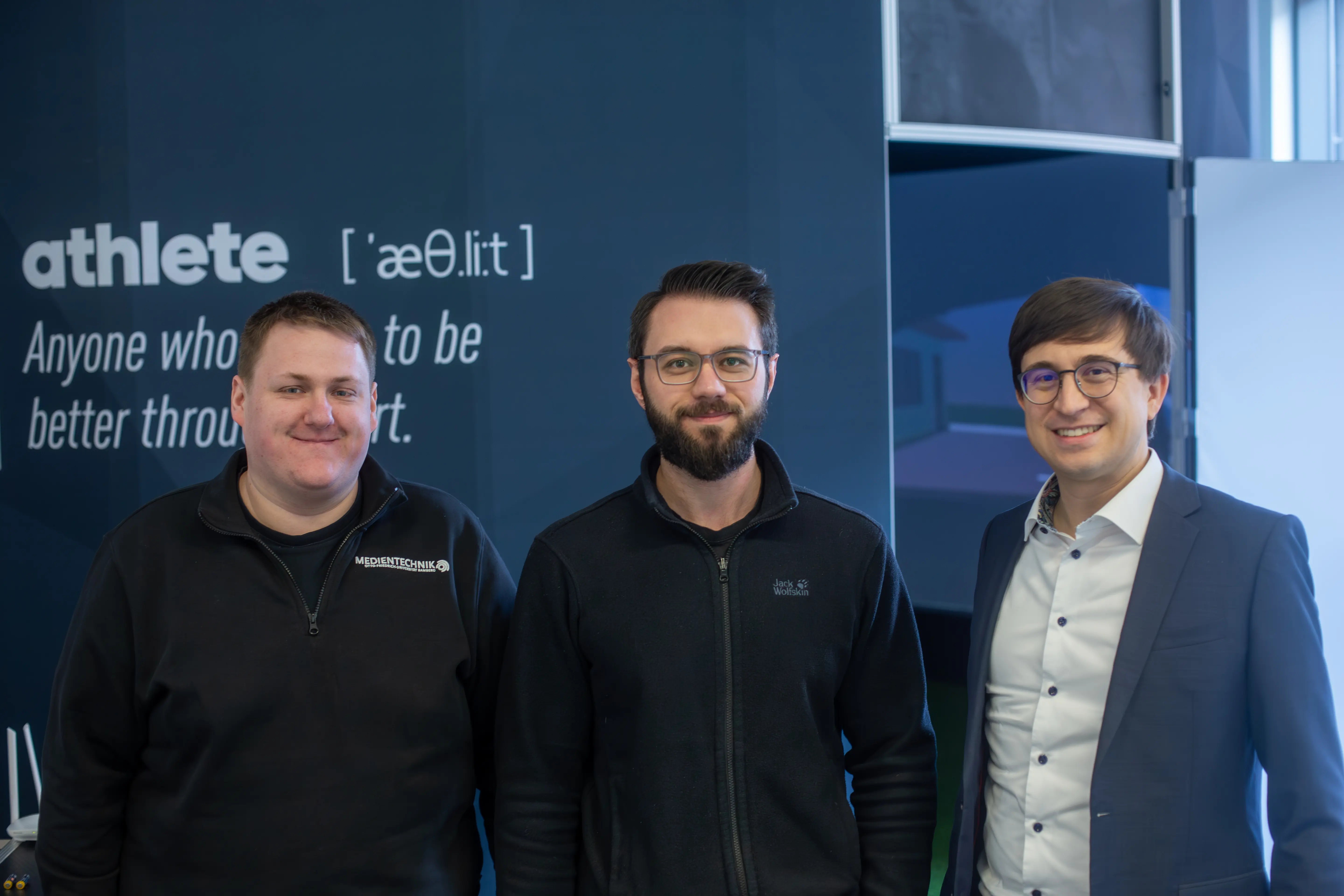 Und tatsächlich, was hier im Erdgeschoss des Uni-Gebäudes an der ERBA Einzug gehalten hat, hat das Potenzial die Studierenden und Lehrenden auf ein neues Level im Bereich Metaverse und Gamification zu hieven: Es ist ein immersives Theater der Firma Igloo Vision. An die Fakultät WIAI kam es im Sommer 2025, die Medientechnik der Universität sorgte für den Aufbau. Prof. Morschheusers Gamification Research Group(GRG) entschied sich dann für den Namen OASIS Lab, in Anlehnung an den Science-Fiction-Film Ready Player One – und, wie Prof. Morschheuser ergänzt: „Weil es wie eine Oase für neue Ideen unserer Studierenden sein soll! Sie können sich hier ausprobieren und selbst forschen – in virtuelle Welten abtauchen und neue Interaktionsformen zwischen Menschen und Technik erkunden.“