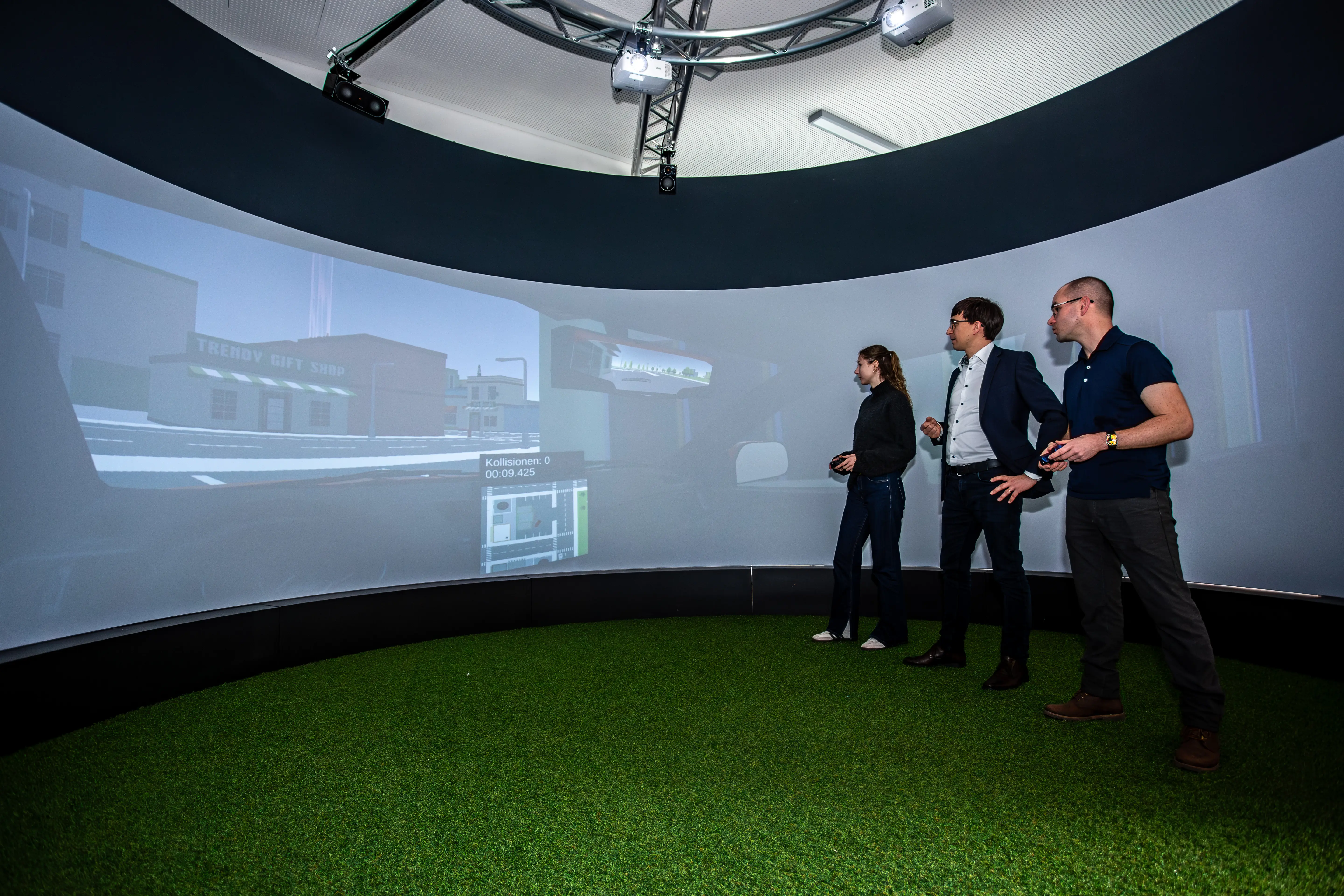 Ein Gang durch Tokio in der Rushhour lässt sich im OASIS Lab ebenso nachbilden wie ein Fahrschulsimulator, den das Team rund um Prof. Morschheuser kurz demonstriert und für den sich jüngst bereits die erste Fahrschule interessierte. „Für Forschung und Transfer haben wir hier sehr viele neue Möglichkeiten, die es jetzt gilt, auszuprobieren!“ resümiert Prof. Morschheuser.