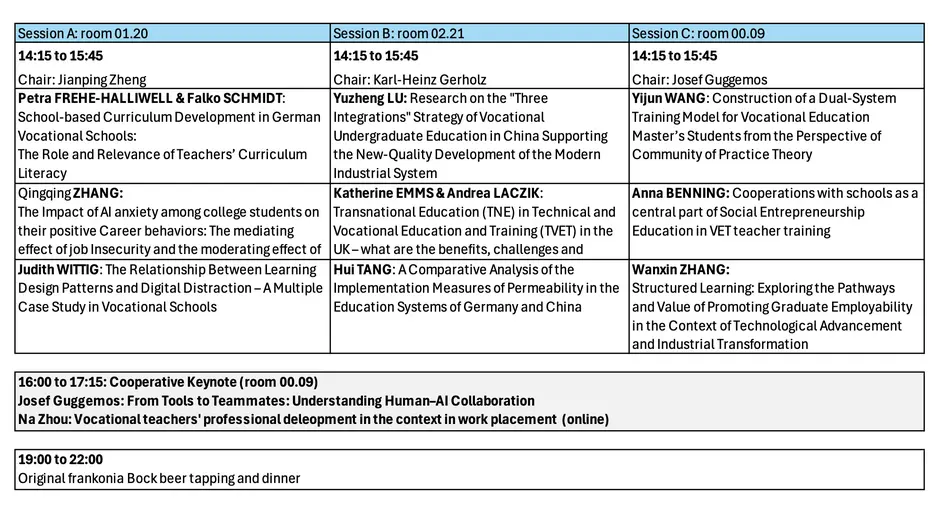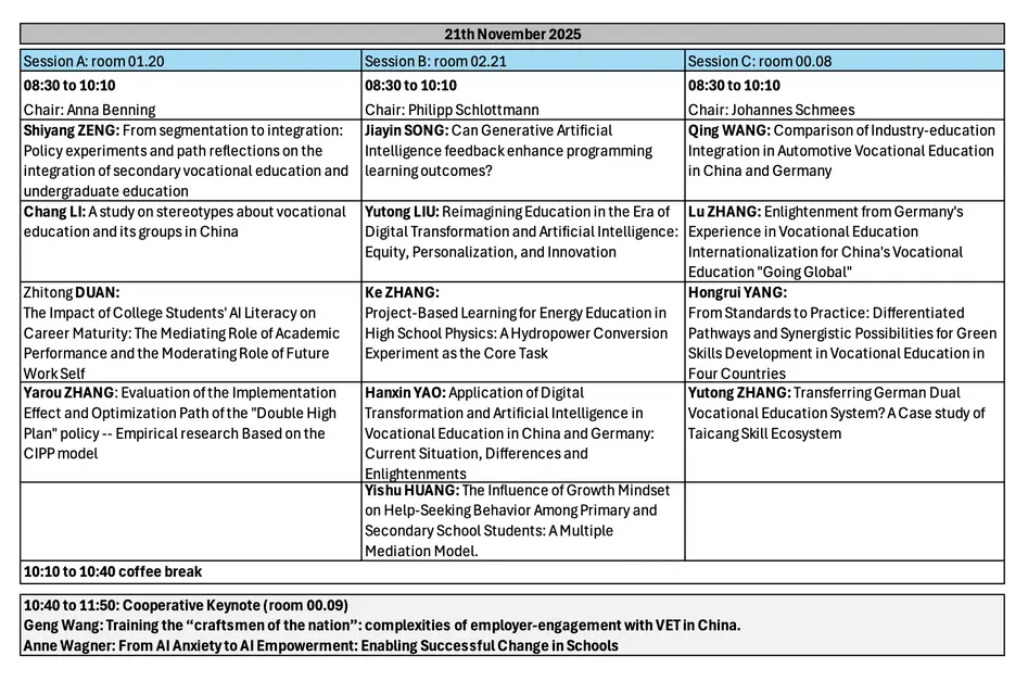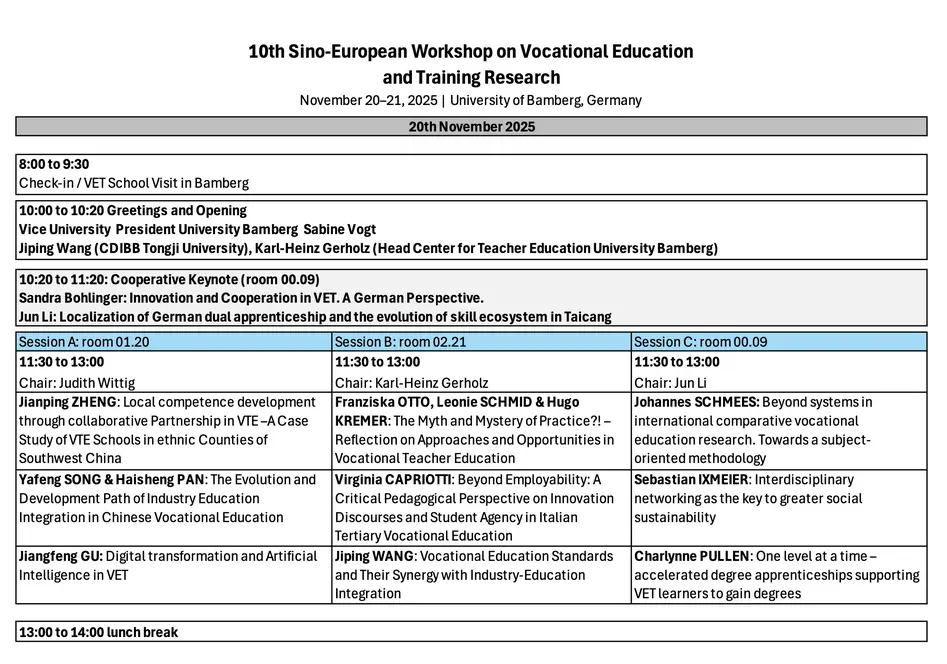 10th Sino-European Workshop on Vocational Education and Training Research November 20–21, 2025 | University of Bamberg, GermanyPlanned schedule