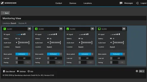 zentrale Software für die Systeme der SpeechLine Digital Wireless- und EW-DX, TeamConnect Ceiling 2 und TC Videobar