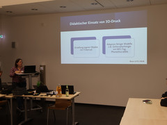 Im Workshop „3D-Druck“ gaben die Referierenden Nicholas Peterson und Dr. Anja Gärtig-Daugs eine praxisnahe Einführung in den 3D-Druck. Es wurden unter anderem Einsatzmöglichkeiten in (hoch-)schulischen Lehrkontexten behandelt, um fachliche und digitale Kompetenzen zu fördern. Weiterhin wurde praktisch mit Tinkercad gearbeitet, sowie eigene 3D-Objekte erstellt. Schließlich wurde sich mit Chancen und Herausforderungen bei der Lehr- und Unterrichtskonzeption mit 3D-Druck auseinandergesetzt.