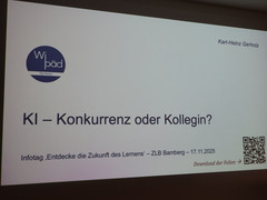 Der Infotag 2025 startete mit einem kurzen Rückblick auf die erste Ausschreibungsrunde des Innovationspreises für digitales Lehren und Lernen in den DigiLLabs. Damit wurde die nächste Bewerbungsphase 2026 eingeläutet. Anschließend konnten die Teilnehmenden einen von zwei angebotenen Workshops besuchen.