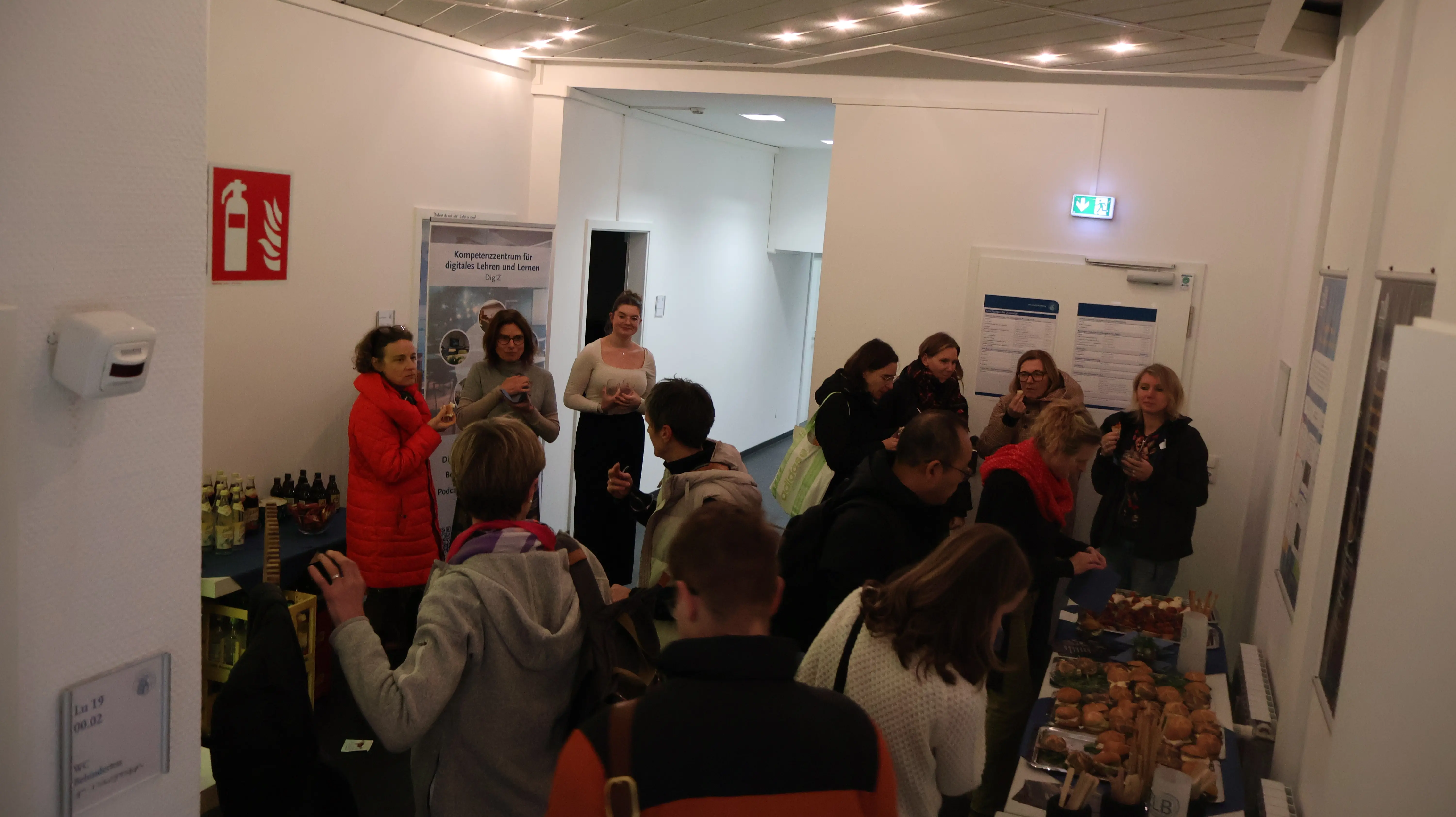 Im Anschluss an die Workshops bestand die Möglichkeit des weiteren Austauschs zu den Möglichkeiten des Lehrens und Lernens bei einem kleinen Imbiss und Getränken.