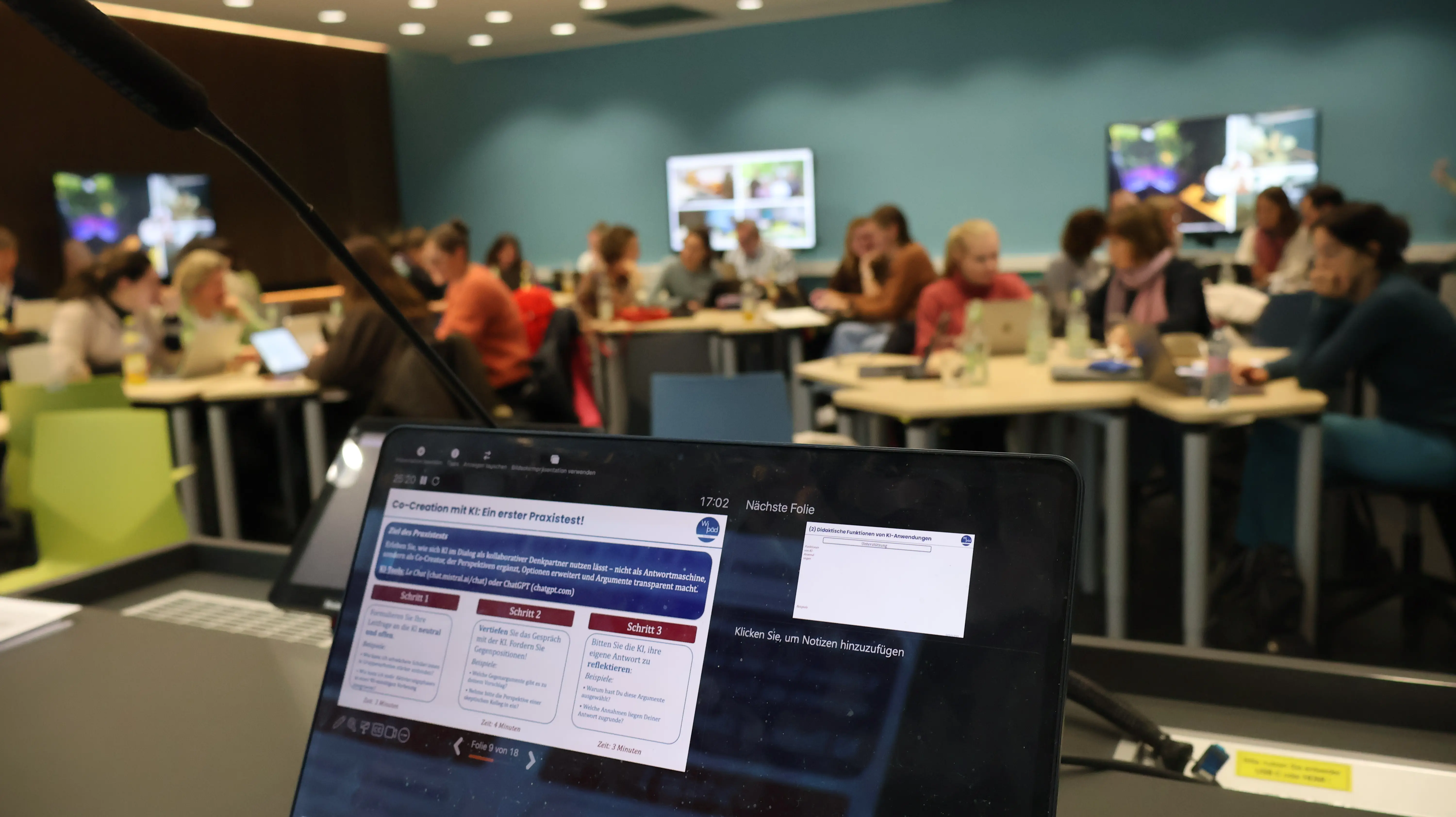 Im Workshop „KI – Konkurrenz oder Kollegin“, geleitet von Prof. Dr. Karl-Heinz Gerholz, konnten die Teilnehmenden, basierend auf einem Modell didaktischer Funktionen von künstlicher Intelligenz, die vielfältigen Potentiale für Lehrkräfte erkunden. Anschließend wurde der produktive Einsatz von KI, in konkreten Übungseinheiten ausprobiert und praktisch angewendet.
